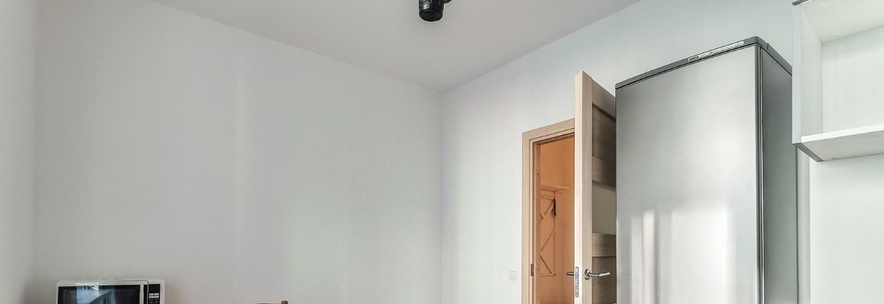 В спальне Вы найдёте удобную кровать с мягким изголовьем, прикроватную тумбу, платяной шкаф, напольную вешалку. Есть рабочий стол!