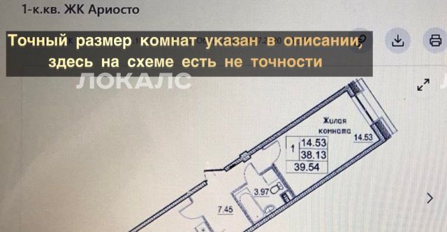 1-комнатная квартира: Санкт-Петербург, проспект Художников, 13к3 (39 м²)