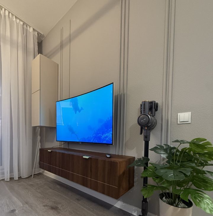 В кухне-гостиной раскладной диван 160 см который может служить дополнительным спальным местом. Большой телевизор.