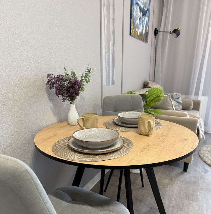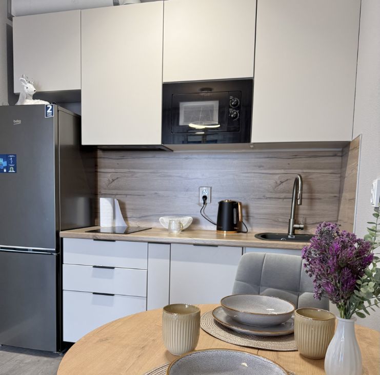Квартира находится на последнем этаже нового дома с краю - минимум соседей и максимум уюта и комфорта. Окна выходят на поля и леса - можно наслаждаться закатами каждый вечер.