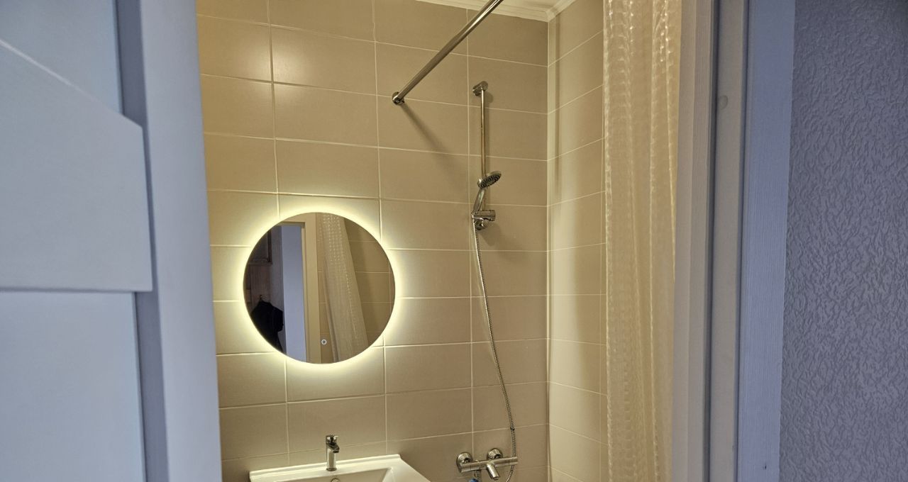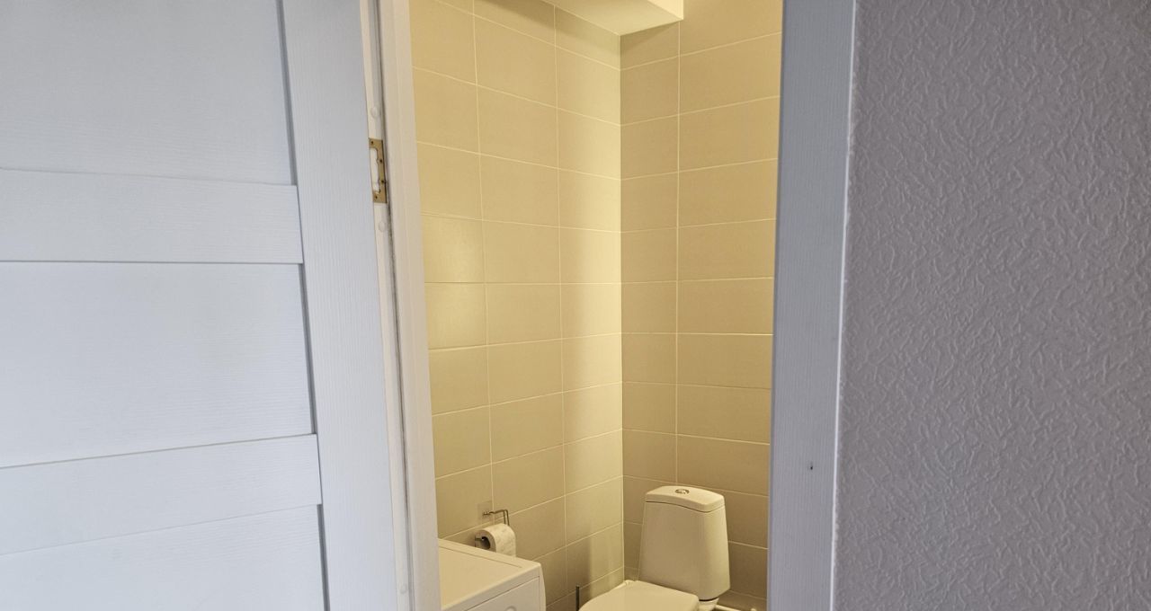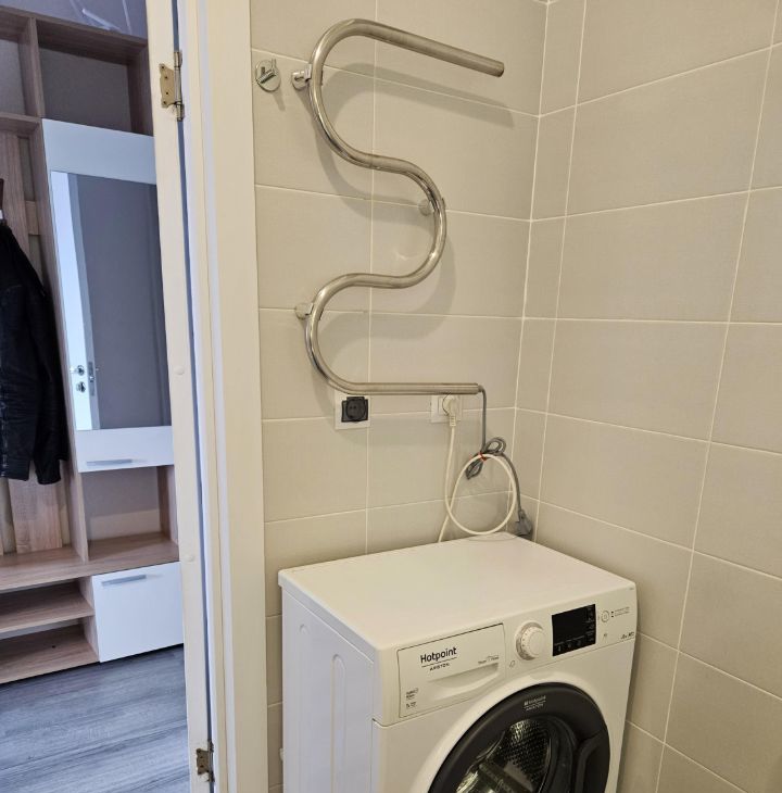 Санузел совмещенный, так же там установлена стиральная машинка.