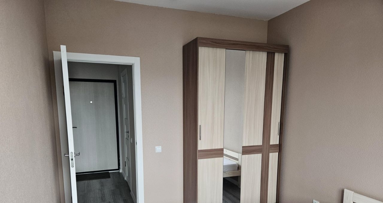 В комнатe удобная двуcпaльнaя кpовaть с матрасом Аскона, шкаф-гардероб для хранeния вещей, пылесос, утюг.