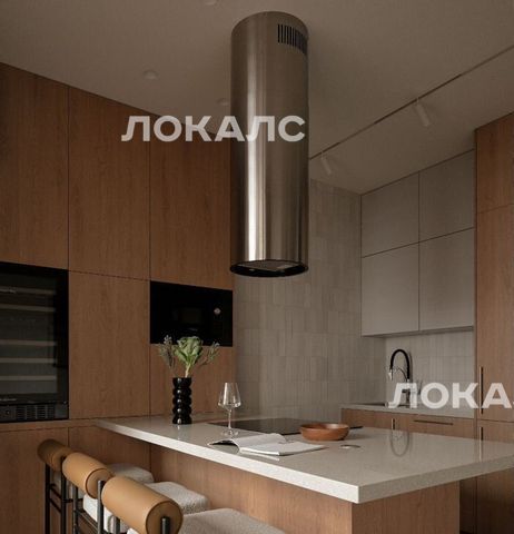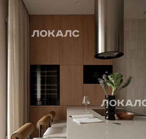 Квартира оборудована всей необходимой бытовой техникой: посудомоечная машина, винный шкаф, холодильник, микроволновая печь, островная индукционная плита, вытяжка, стиральная машина, пылесос.