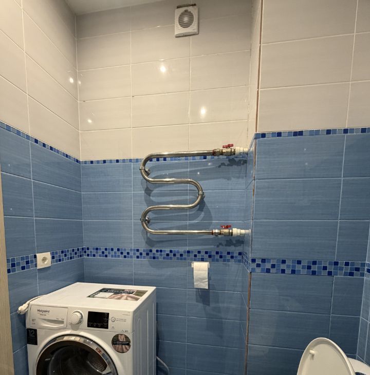 В комнате установлен вместительный шкаф-купе и удобный диван, обеспечивая комфортное размещение. Санузел совмещённый, оборудован стиральной машиной и ванной.