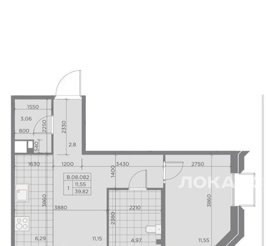 Угловая квартира общей площадью 39,8 кв.м.