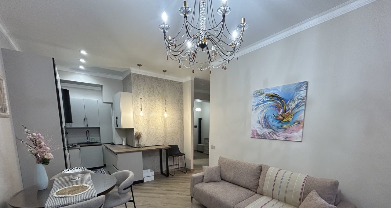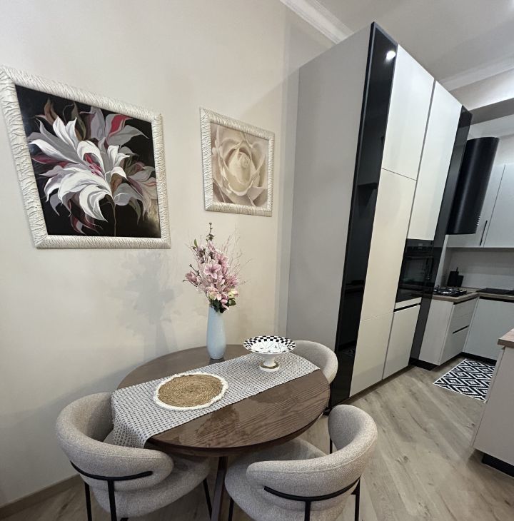 В квартире выполнен стильный, эргономичный ремонт. Вся мебель и техника в идеальном состоянии, в квартире никто не жил. Вход через парадную, свежий лифт, две квартиры на этаже.