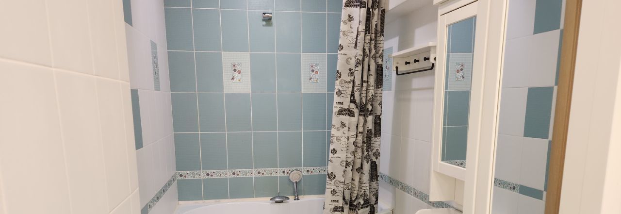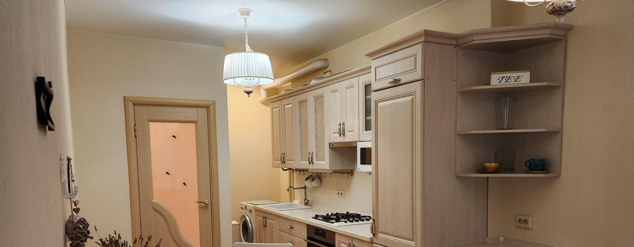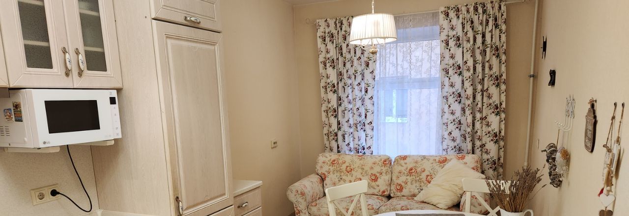 Квартира находится на 5 этаже 6-этажного дома с высокими потолками и представляет собой просторную и светлую жилую площадь общей площадью 59 м². Состоит из просторной спальни с двуспальной кроватью и кухонной столовой с диваном, который может быть использован в качестве дополнительного спального места. Также вналичии гардеробная комната и совмещенный санузел с гидромассажной ванной, унитазом, раковиной и биде. В квартире есть все необходимое для комфортного проживания, включая бытовую технику: газовая плита, духовой шкаф, микроволновая печь, мультиварка, большой чайник, стиральная машина и т.д.. Квартира подключена к интернету.
