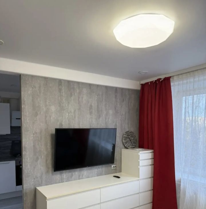 В квартире есть всё необходимое для комфортного проживания. В комнате и на кухне — современная мебель. Из техники: холодильник, посудомоечная машина, стиральная машина и телевизор. Санузел совмещённый, оборудован ванной. Есть интернет.