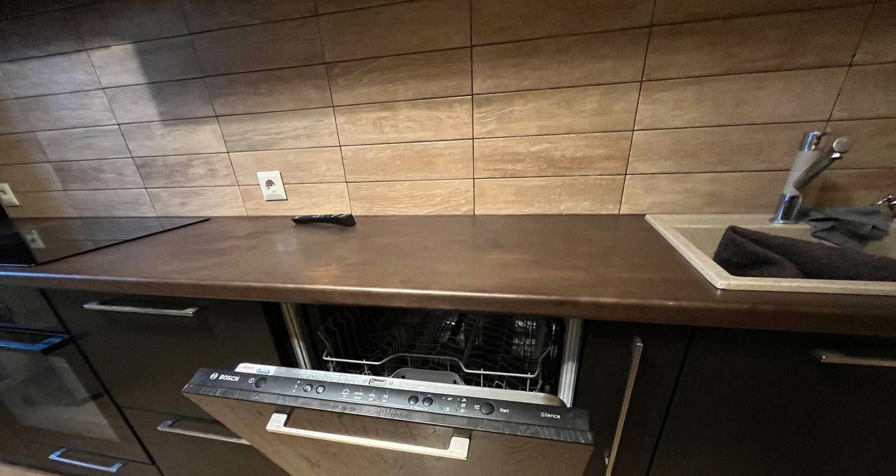 Техника: холодильник, посудомоечная машина, стиральная машина, духовка, варочная панель.