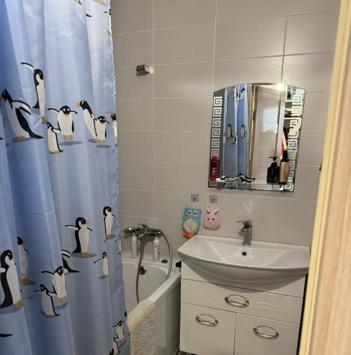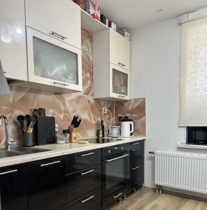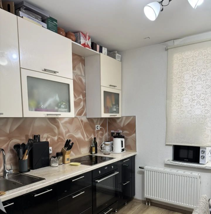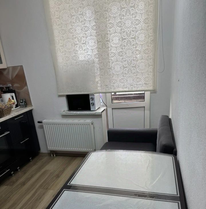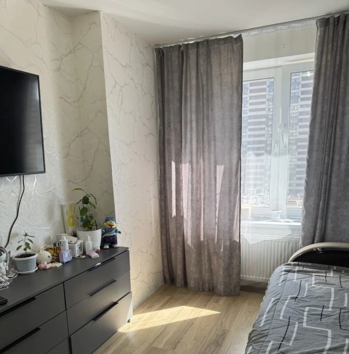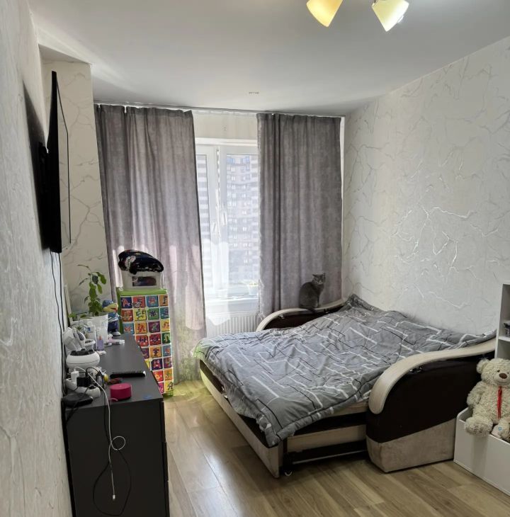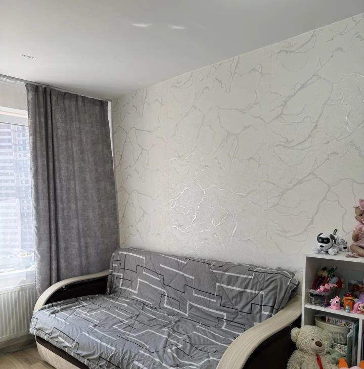 Продается уютная однокомнатная квартира с современным ремонтом в монолитном доме 2018 года постройки. Просторная кухня оборудована всей необходимой техникой, включая холодильник и стиральную машину. В комнате установлен вместительный шкаф-купе и удобный диван. Из окон открывается вид на детскую площадку во дворе, что создает атмосферу безопасности и комфорта для семьи с детьми.