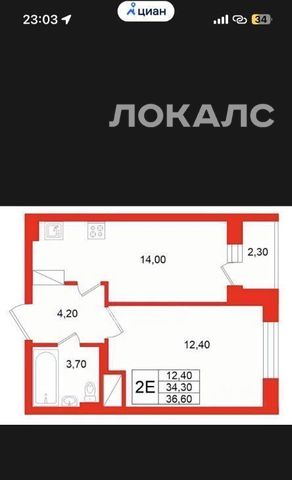 1-к кв. Санкт-Петербург ул. Русановская, 16к3 (33.0 м²)