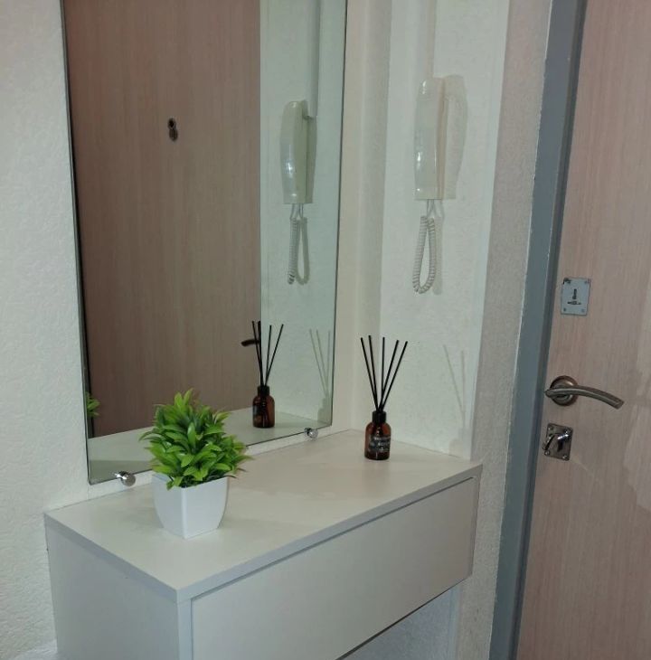 2х спальная кровать , шкаф, шкаф в прихожей, туалетный столик с LED зеркалом, мини стенка, стиральная машина, 2х камерный холодильник Candy, кухонный гарнитур, варочная поверхность, СВЧ печь, кухонный стол. Квартира с хорошим ремонтом, очень чистая и ухоженная. Имеется застекленный балкон.