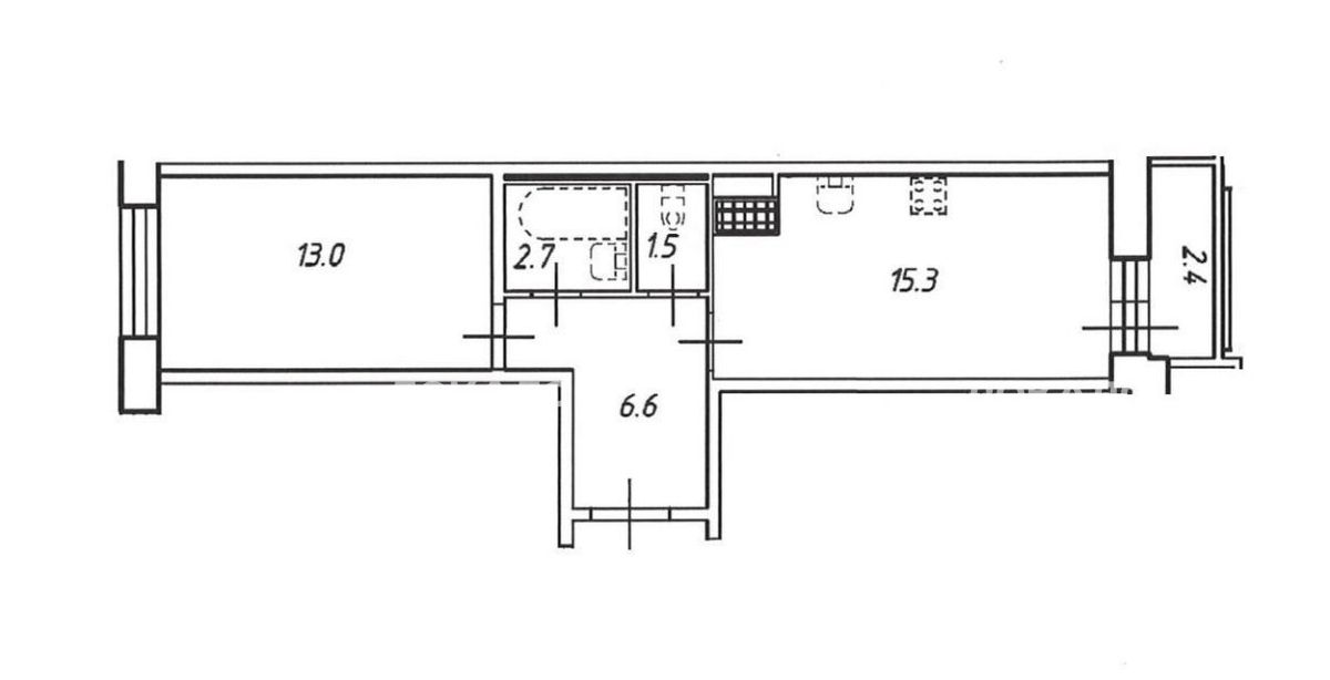 2-комнатная квартира: Санкт-Петербург, Серебристый бульвар, 34к1 (45.6 м²)
