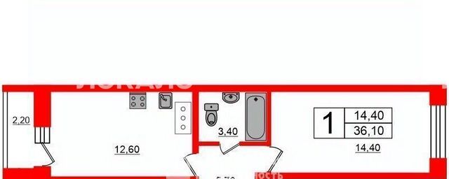 1-к кв. Санкт-Петербург ул. Русановская, 18к6 (36.1 м²)