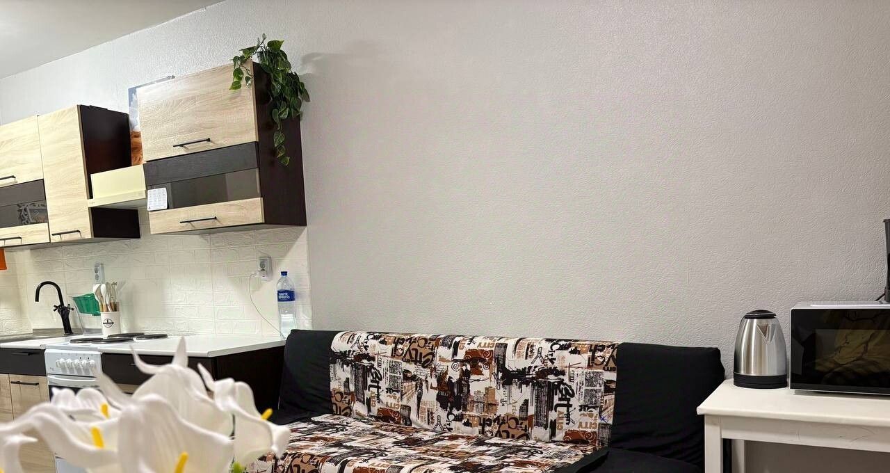 -кухня полностью оборудована и укомплектована для приготовления вкусных блюд. Кухня имеет выход на балкон- что позволяет ранним утром заварить чашечку крепкого кофе и испить его вкушая свежий утренний и бодрящий воздух. В кухне имеется раскладной диван- это позволит расположить гостей.