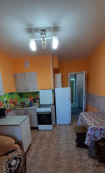 Внутри выполнен косметический ремонт. Кухня площадью 14 кв.м оборудована всей необходимой мебелью и техникой, включая холодильник и стиральную машину. В комнате есть мебель для вашего удобства. Ванная комната оснащена ванной, что позволит вам расслабиться после долгого дня. Также в квартире есть лоджия, где можно насладиться видом и свежим воздухом.