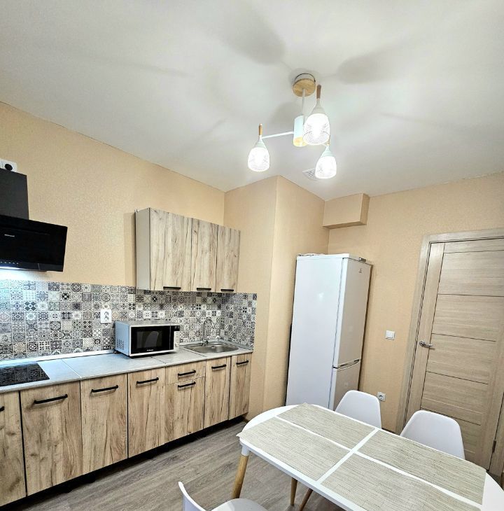 Сдается уютная однокомнатная квартира на 14 этаже современного 24-этажного дома, построенного в 2022 году. Общая площадь квартиры составляет 34 кв. м, из которых 20 кв. м отведено под жилую зону и 10 кв. м — под кухню. Высота потолков — 2.6 метра, что позволяет чувствовать себя свободно. Из окон открывается вид во двор, что гарантирует тишину и спокойствие.