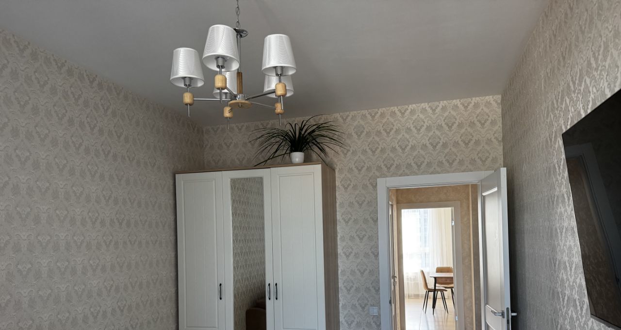 В квартире есть мебель и техника. в комнате: диван, комод, шкаф с зеркалом, телевизор.