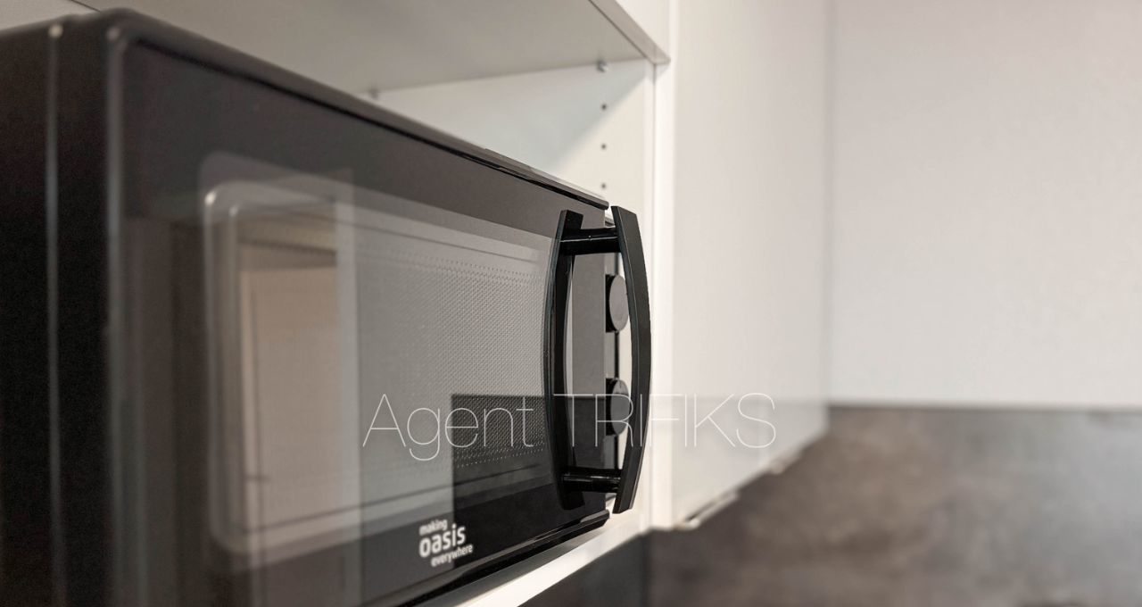 Кухня оснащена гарнитуром, встроена посудомоечная машина, есть микроволновка и варочная панель с угольным фильтром.