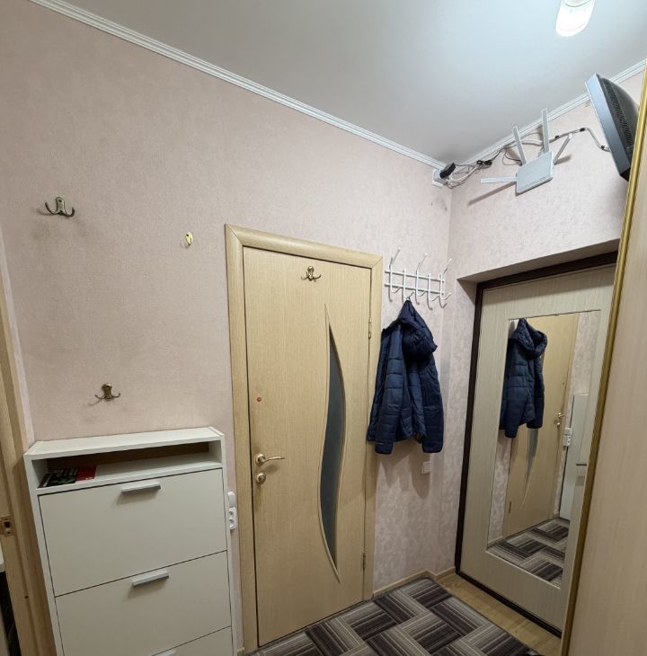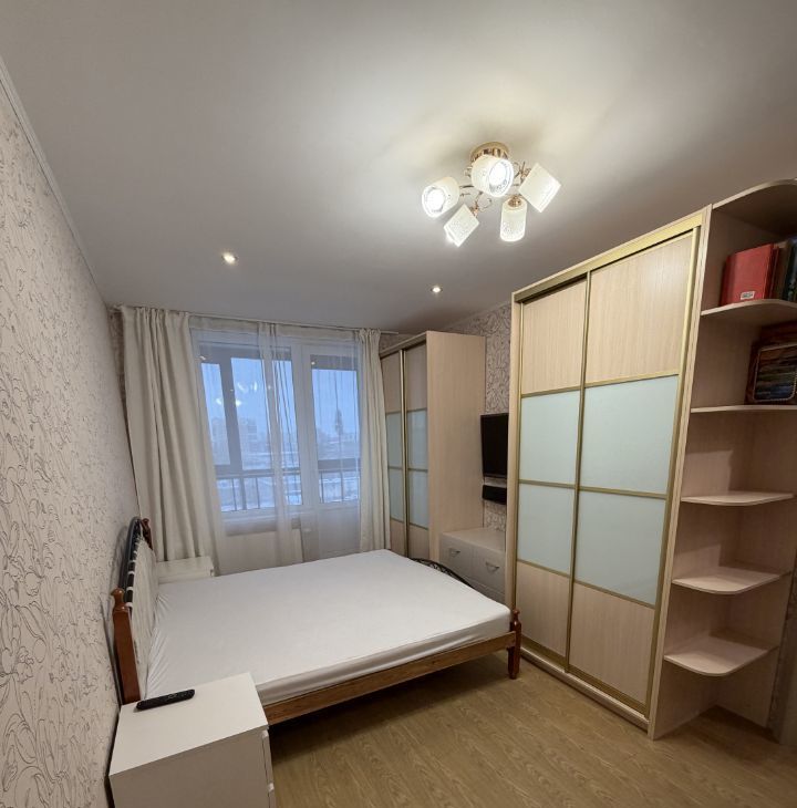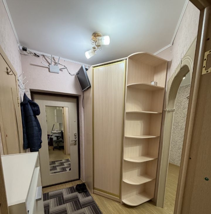 В прихожей вместительный угловой шкаф, обувница. В комнате: большая комфортная кровать шириной 180 см, 2 шкафа, прикроватные тумбы, комод. На кухне: раскладной диван с местом для хранения, стол.