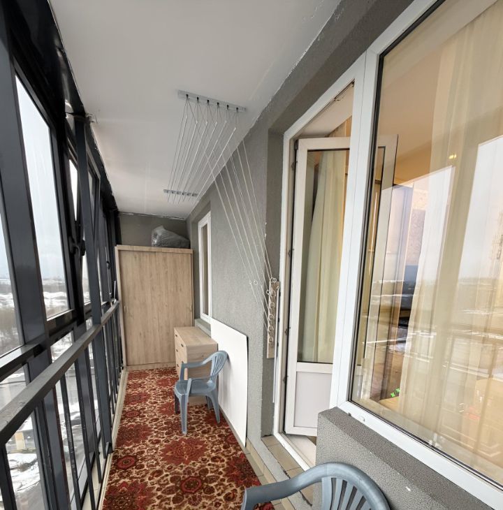 Особенностью квартиры является наличие большой лоджии с панорамным остеклением, где можно наслаждаться свежим воздухом и видом. Это ещё одна комната))) Идеально для летних вечеров. На лоджии шкаф, комод, стол, стулья.
