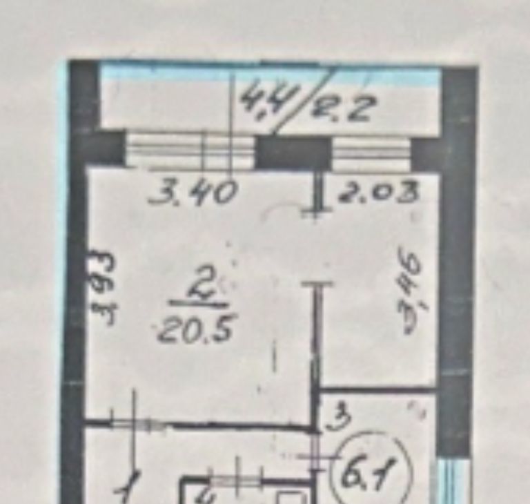1-комнатная квартира с перепланировкой в 2-комнатную. Кирпичный дом.