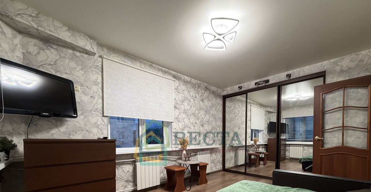 В квартире: раскладной диван, большой шкаф-купе, стол, стулья, телевизор