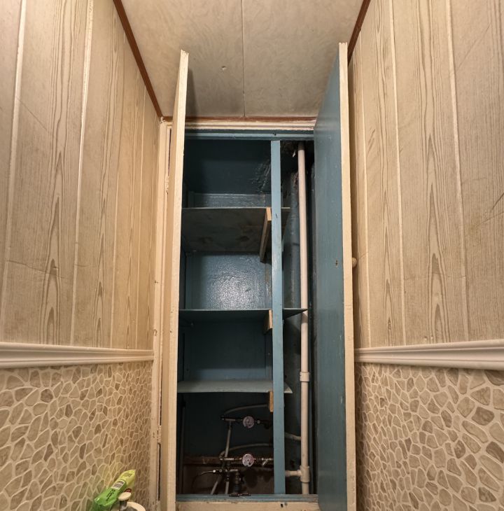 Техника: стиральная машина, холодильник, плита, микроволновка, телевизор, роутер, чайник.