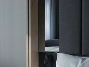 Дизайн интерьера выполнен в минималистичном стиле. В номере есть зона релакса с панорамными окнами и шторами блэкаут.