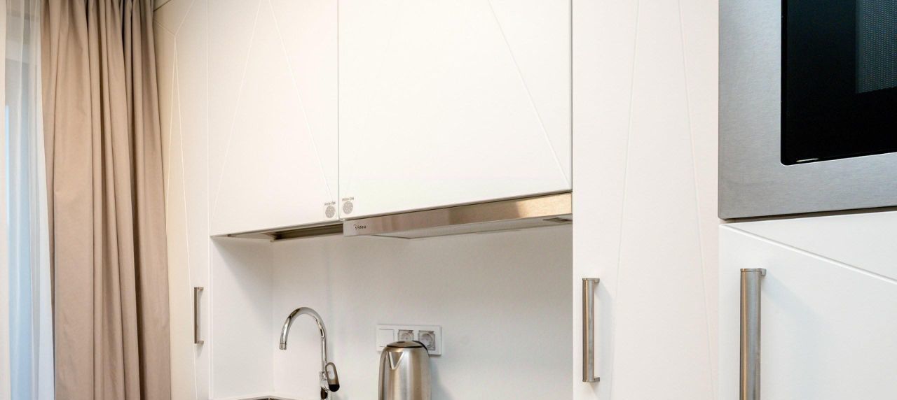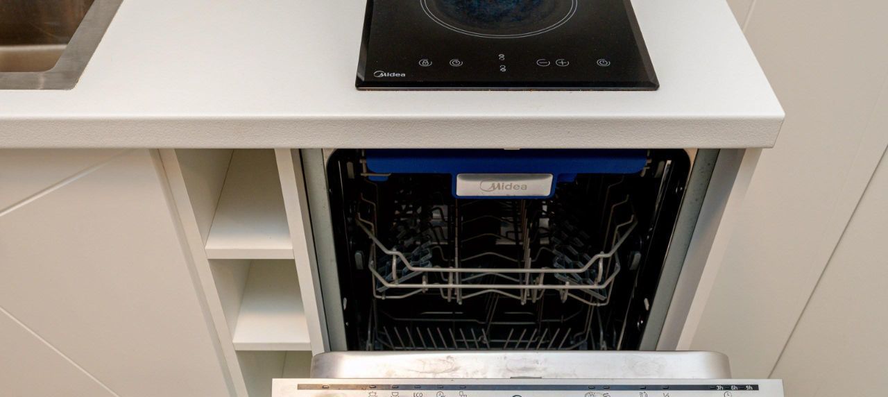 - В кухонной зоне: посудомоечная машина, плита, холодильник, чайник, посуда и столовые приборы на любой случай.