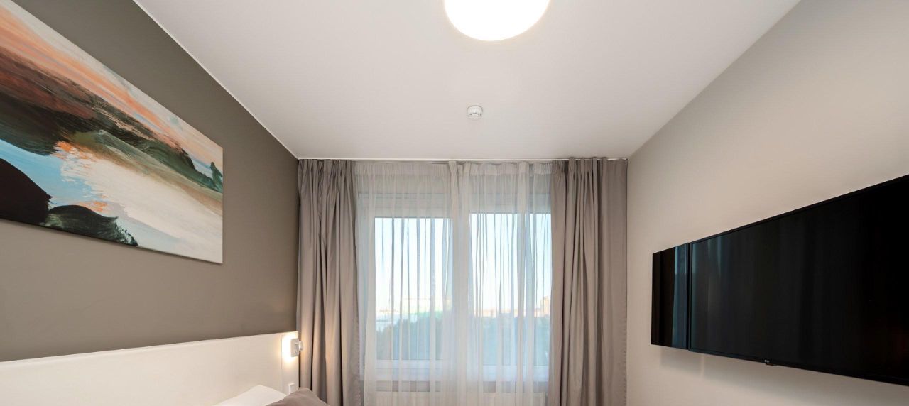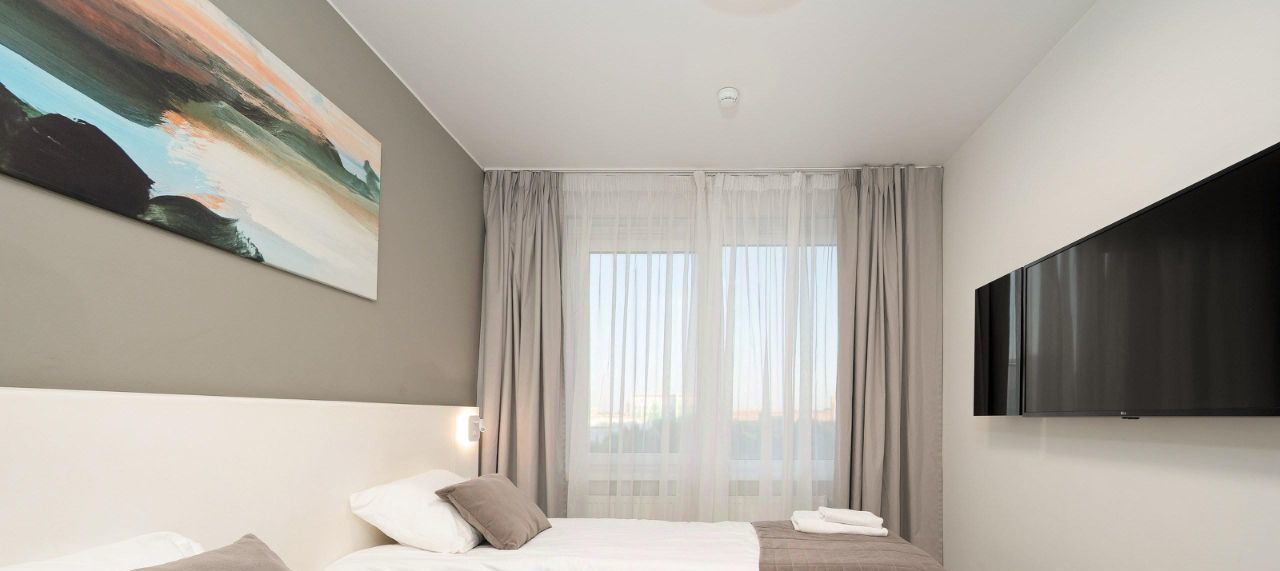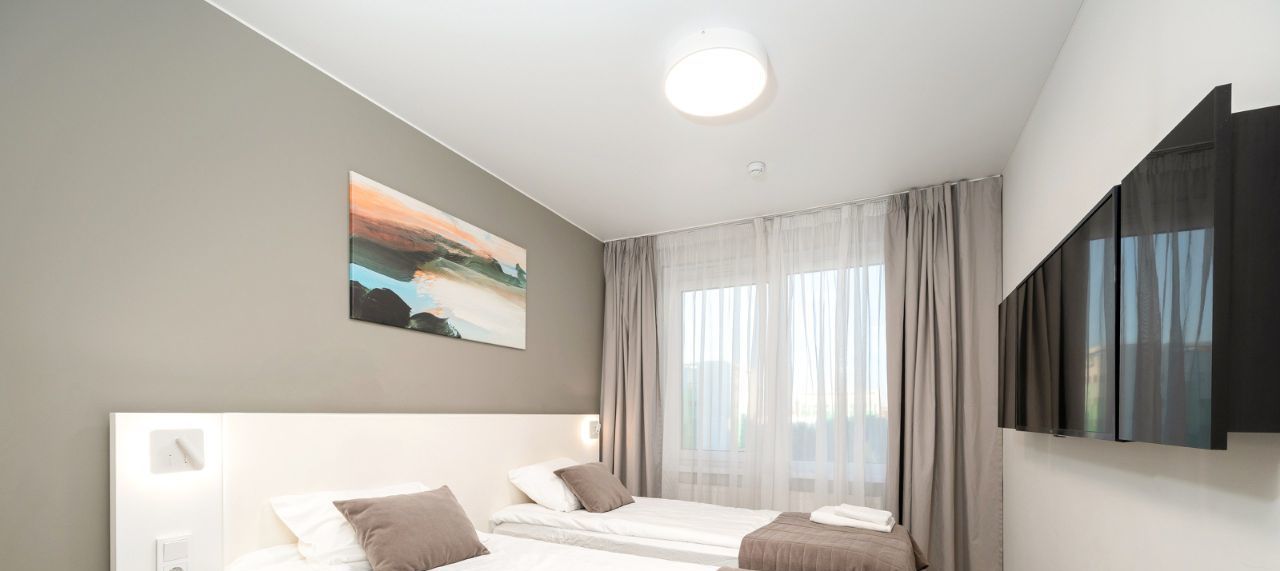 - В местах отдыха: ЖК телевизор со Smart TV, зеркало в полный рост, шторы блэкаут, кондиционер.