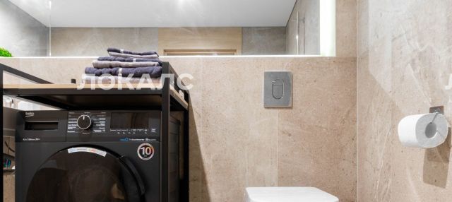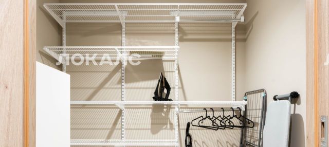Квартира оснащена вместительной зоной хранения, стиральной машиной, феном, гладильной доской, сушилкой и утюгом