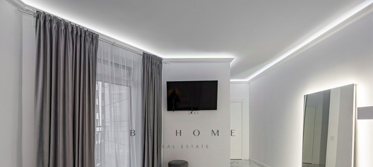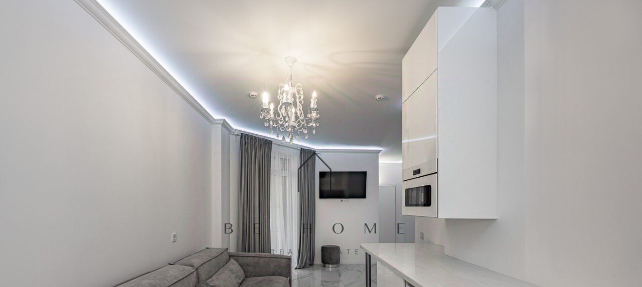 Большая кухня-гостиная с зоной отдыха, оснащенная современной техникой, с выходом на уютный балкон. Просторная спальня с женским уголком, гардеробная и совмещенная ванная комната.