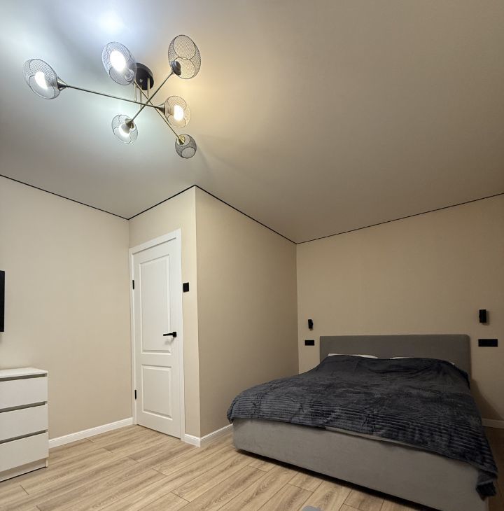 Спальня: В светлых тонах, с удобной кроватью и новым матрасам и вместительным шкафом.