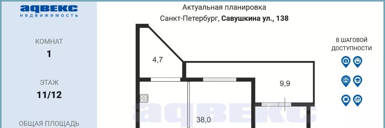 1-к кв. Санкт-Петербург ул. Савушкина, 138 (70.0 м²)