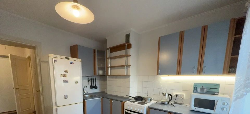 Квартира в хорошем, свежем и чистом состоянии, светлая и удобная. Установлена металлическая дверь. Все помещения правильной формы. Просторная прихожая со шкафом. Большая застекленная лоджия. В спальне диван, стенка, новый ТВ, два удобных кресла , журнальный столик и торшер. Из техники холодильник, микроволновка, стир. машина, пылесос. На кухне имеется посуда и кухонная утварь эл. чайник. В общем все, что необходимо для комфортной жизни.