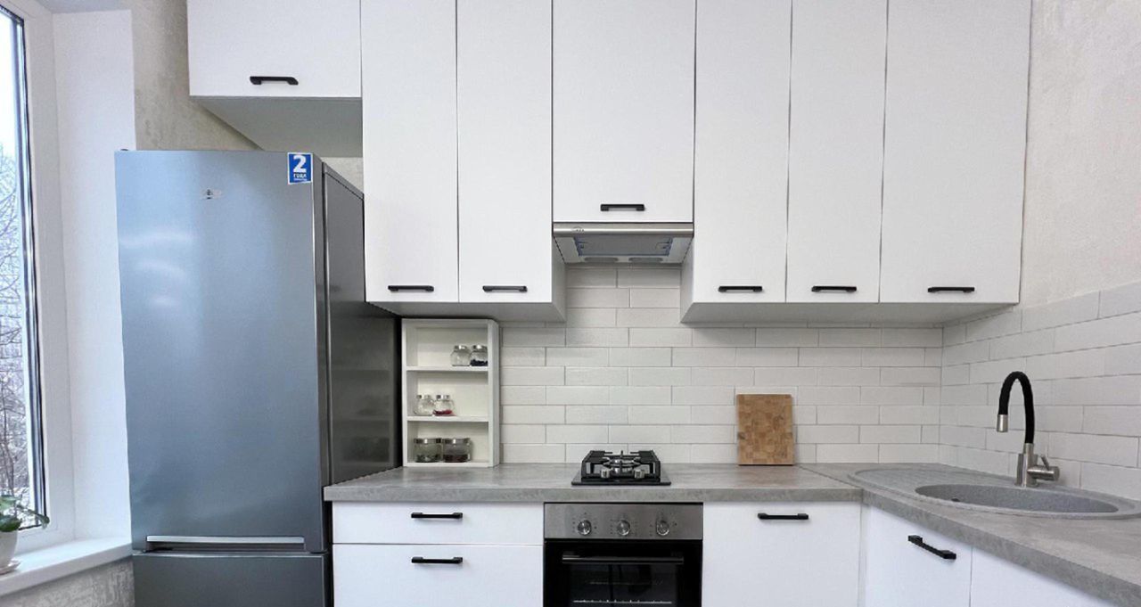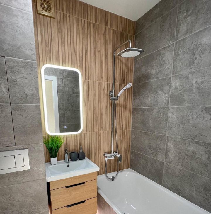 Квартира с хорошим ремонтом. В наличии вся необходимая техника: холодильник, телевизор и стиральная машина. На кухне имеется мебель. Санузел совмещенный, в ванной комнате есть ванна.