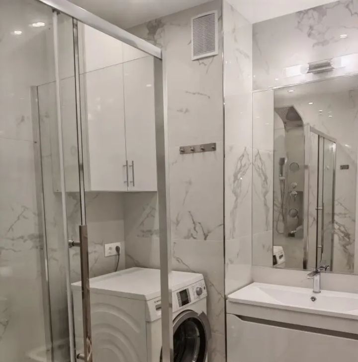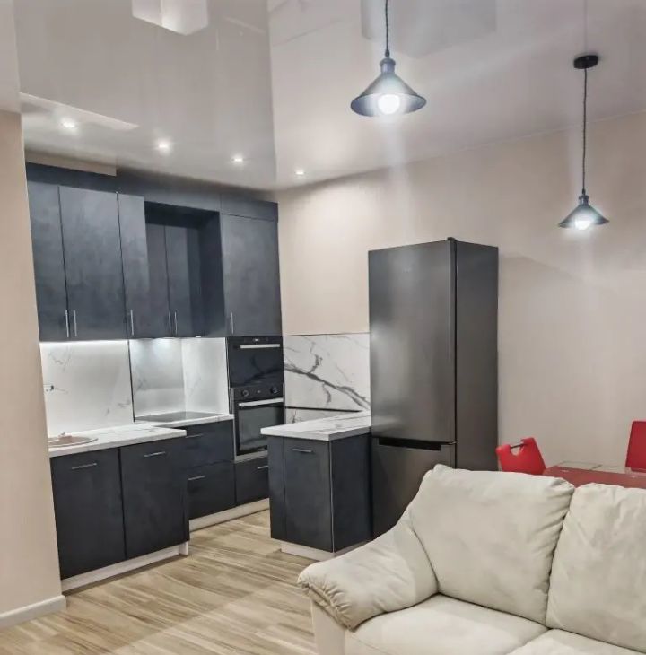 В квартире выполнен качественный евроремонт. Есть вся необходимая мебель как на кухне, так и в комнате, поэтому вам не придётся беспокоиться о дополнительных покупках. Из техники — холодильник, посудомоечная машина, телевизор и стиральная машина, которые сделают вашу жизнь комфортной. Ванная комната оборудована душевой кабиной. Также есть балкон, где можно наслаждаться свежим воздухом.