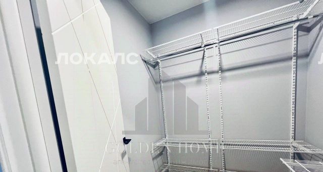 В отдельной гардеробной удобно хранить вещи благодаря продуманной системе хранения.