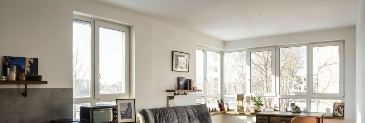 Окна выходят на две стороны — во двор и на улицу, что обеспечивает отличную освещенность и ощущение пространства.