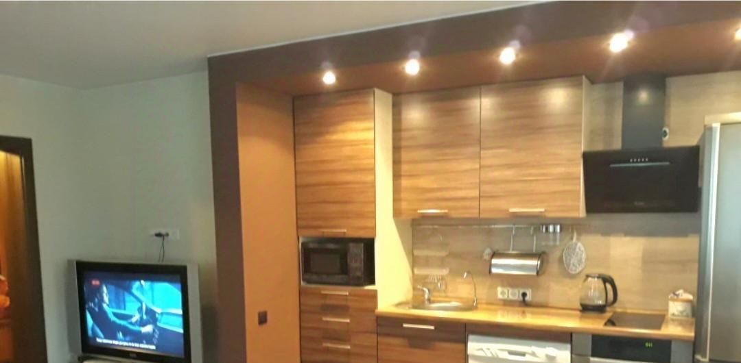 Большая светлая кухня-гостиная 23 м. и уютная спальня 12 м. Свежий добротный ремонт и современная мебель и техника. Отдельная хозкомната-прачечная.