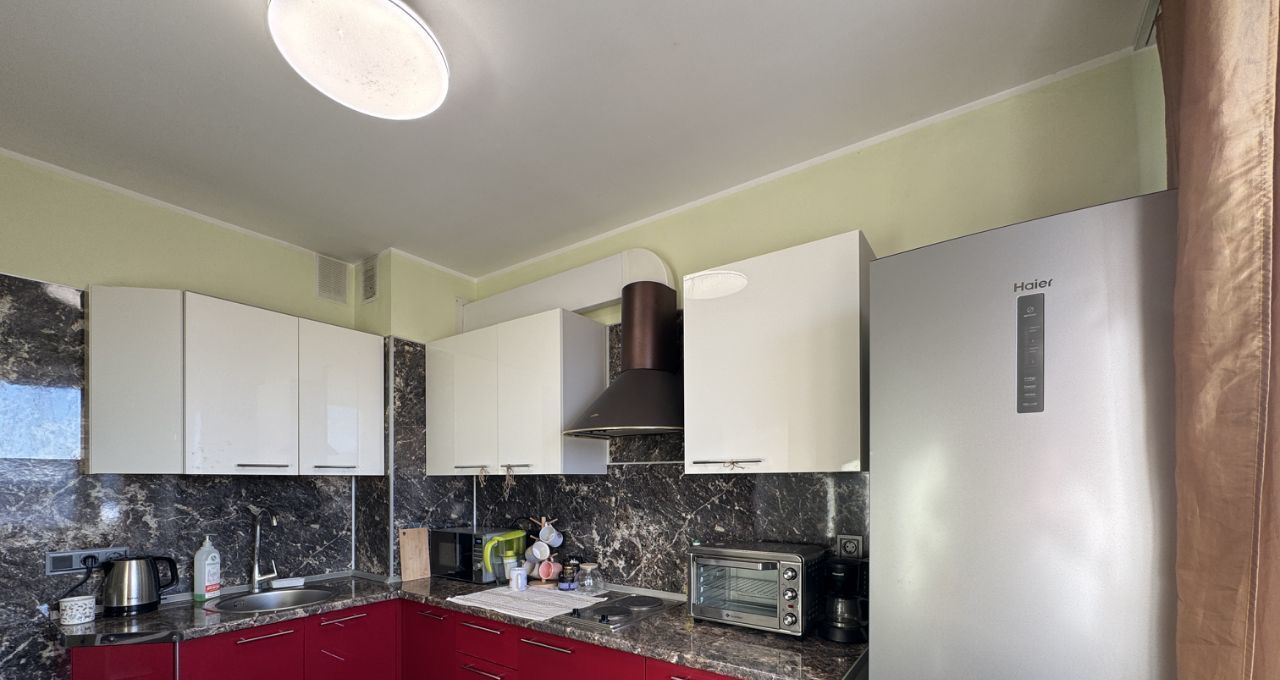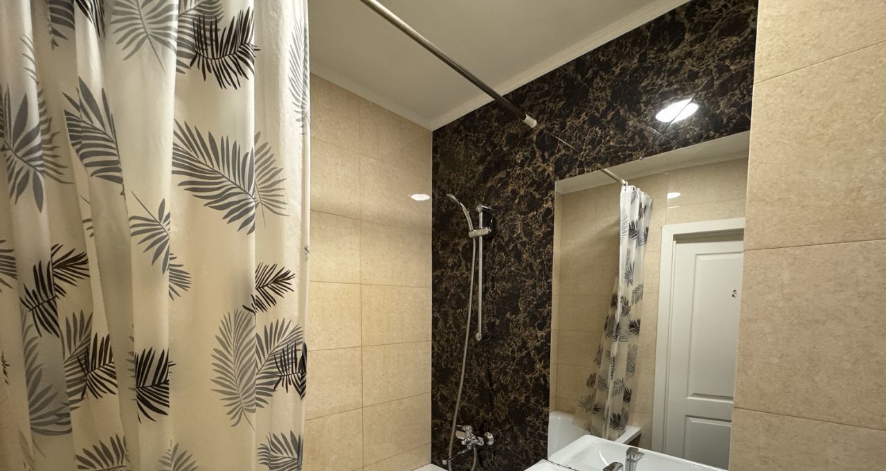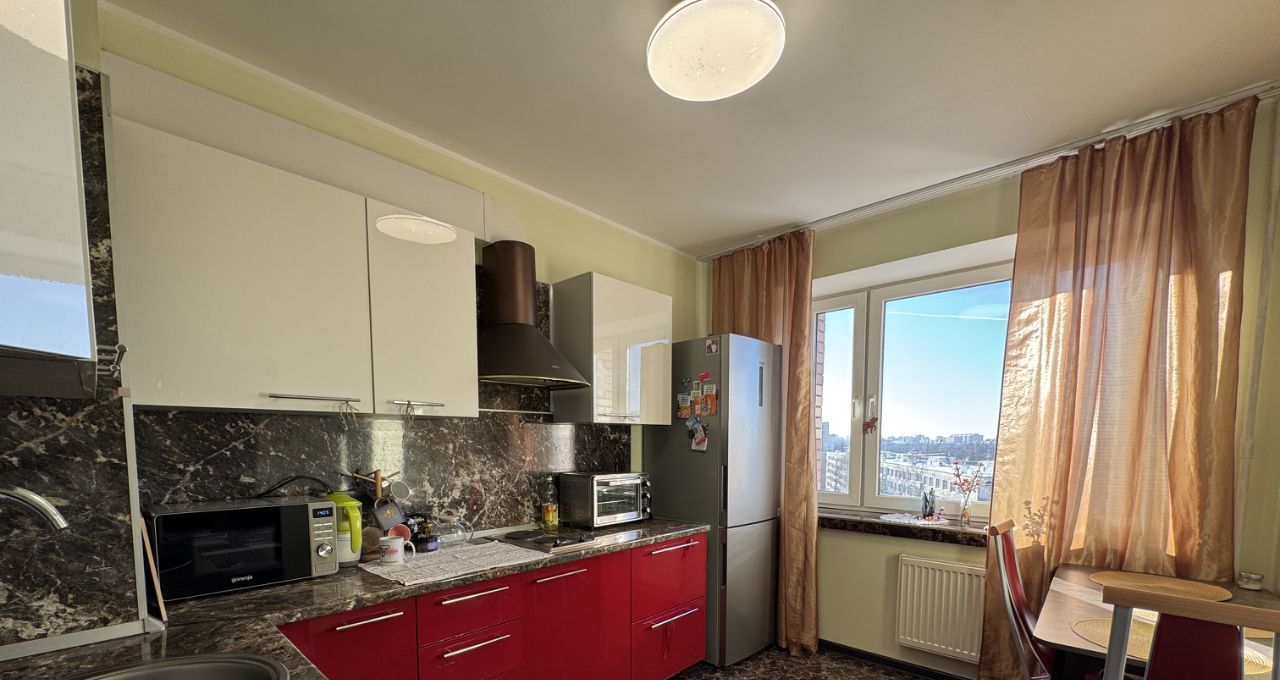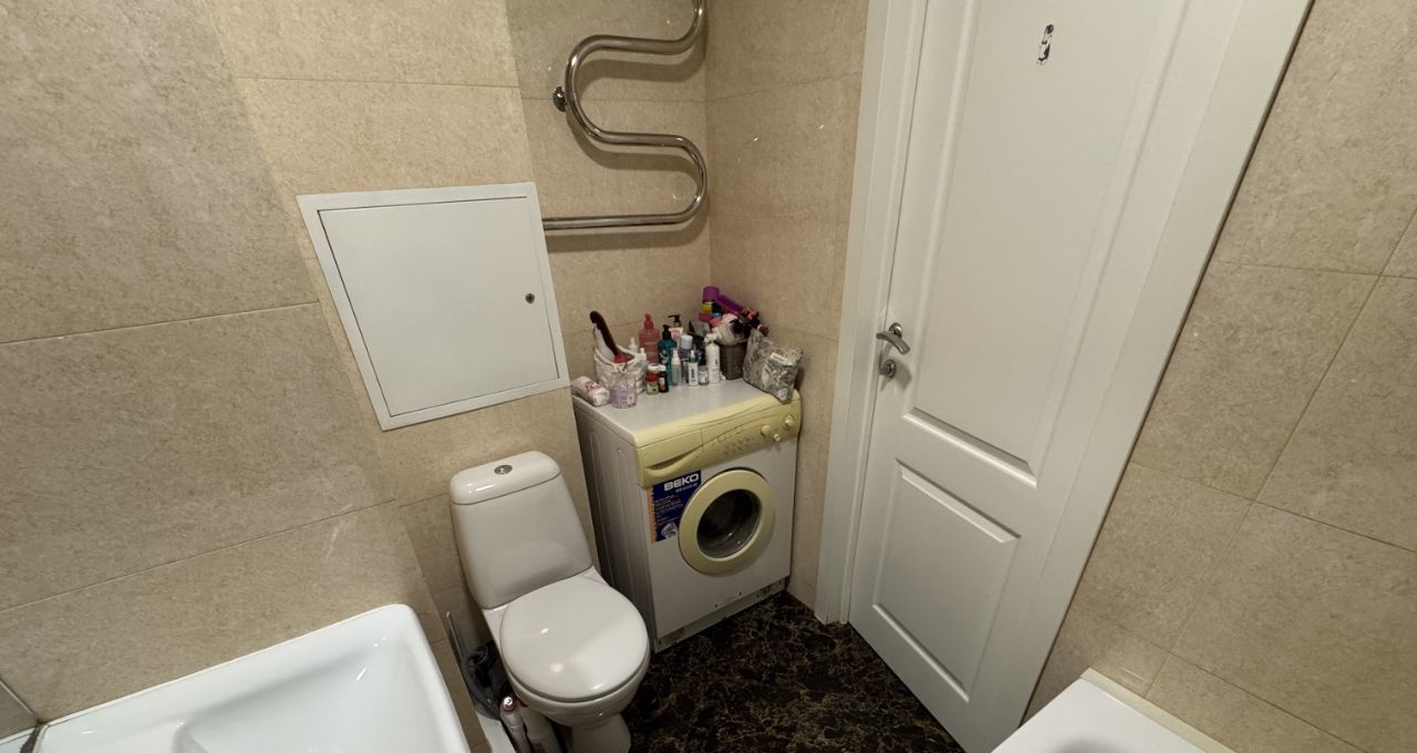 Квартира полностью готова к проживанию, имеется вся необходимая мебель и бытовая техника. В комнате - две раздельные кровати, которые при желании можно пересобрать в двуспальную кровать, а также диван, рабочий стол, шкаф, выход на застеклённую лоджию. В санузле установлена ванна и стиральная машина. Кухня просторная, функциональная, в наличии посуда и мелкая бытовая техника.