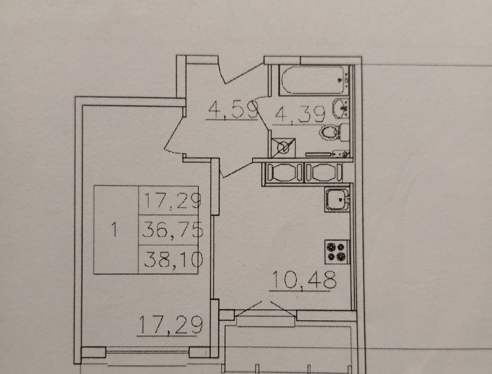 1-к кв. Санкт-Петербург ул. Среднерогатская, 10к1 (38.1 м²)