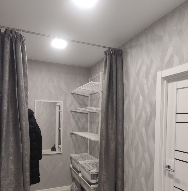 В прихожей установлена вместительная гардеробная система для верхней одежды и хранения сезонной.