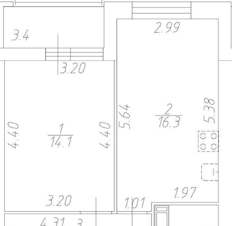 - Жилая площадь: 14,1 кв. м