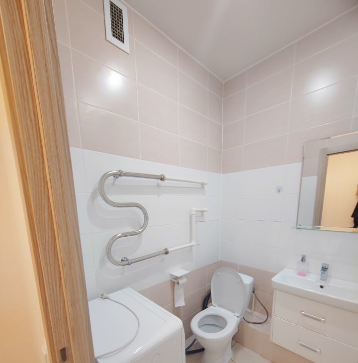В квартире сделан евроремонт, что обеспечивает комфорт и эстетичность. Просторная кухня площадью 12 кв. м уже оборудована мебелью и техникой,есть диван 2х спальный в кухне. В комнате также есть вся необходимая мебель для проживания, большая 2х спальная кровать с ортопедическим матрасом. Санузел совмещенный. В квартире есть интернет.