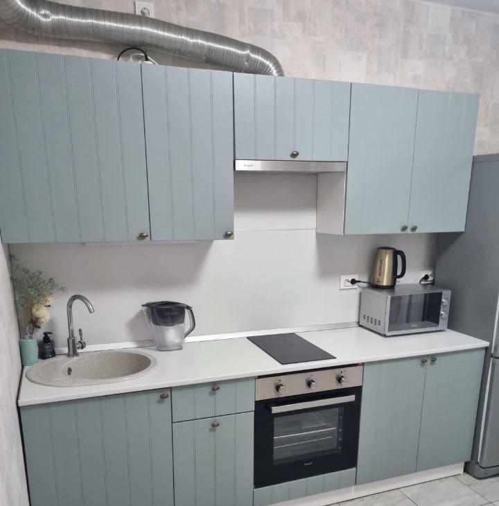 В квартире сделан евроремонт, поэтому все выглядит стильно и современно. Просторная кухня площадью 12 кв. м оснащена необходимой мебелью и техникой, включая холодильник. В комнате также есть мебель, поэтому можно сразу заезжать и жить. Ванная комната оборудована ванной, что создаёт комфортные условия для жизни.