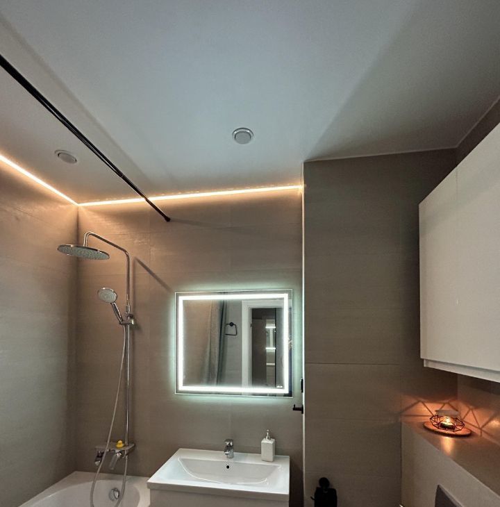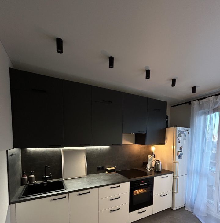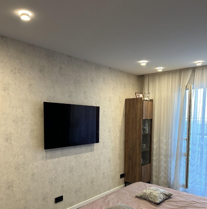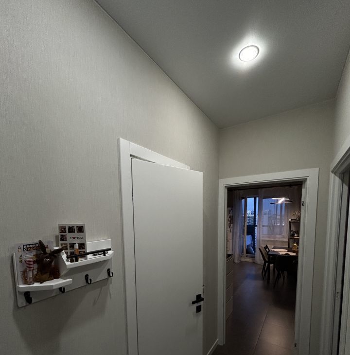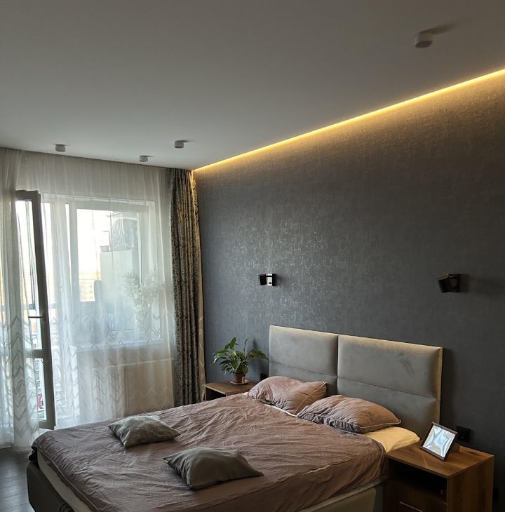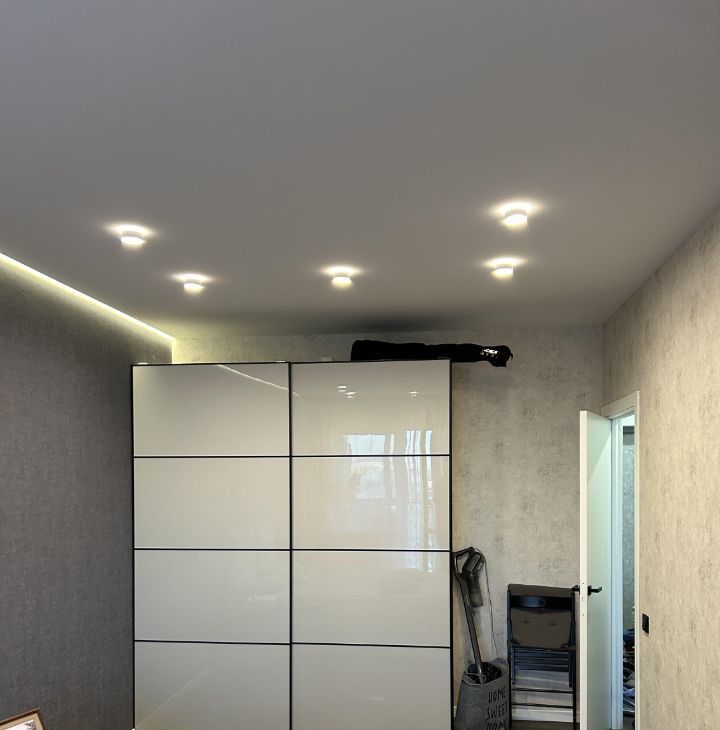 Много акцентного света, разные сценарии освещения. Продуманная электрика, много розеток.