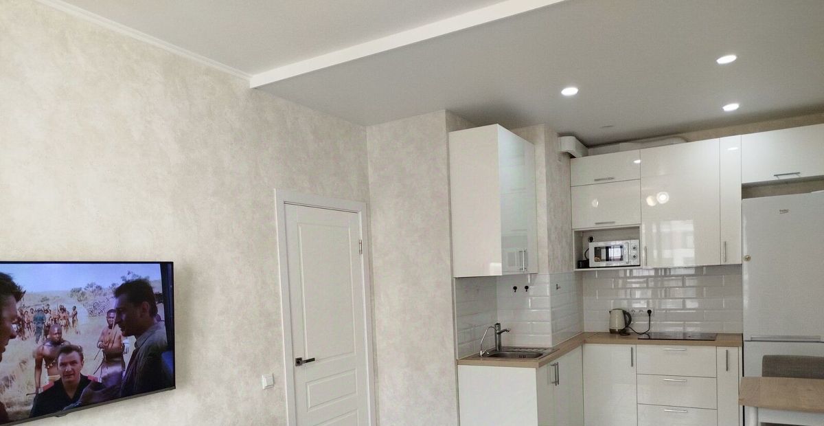 Большая кухня-гостиная почти 18 м.кв., спальня 12.6 м.кв., хороший ремонт, вся необходимая мебель и техника .