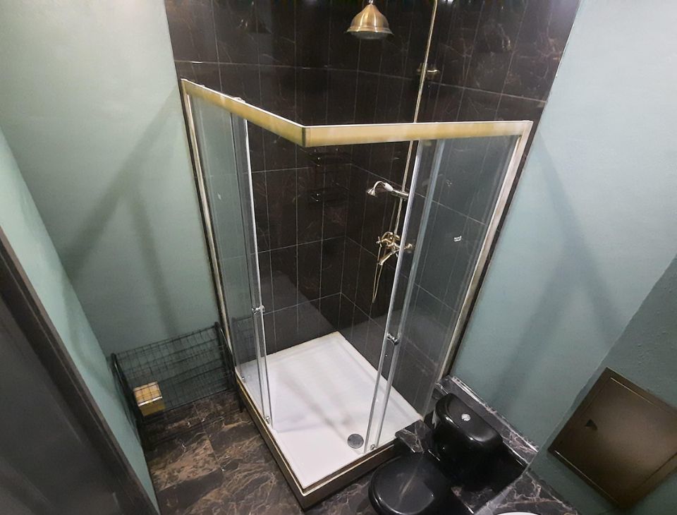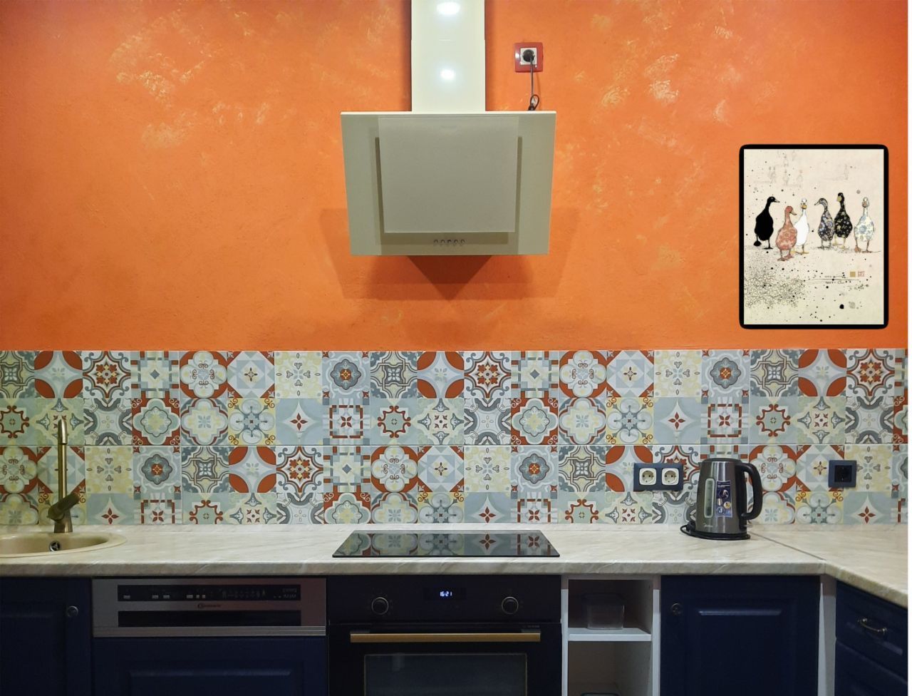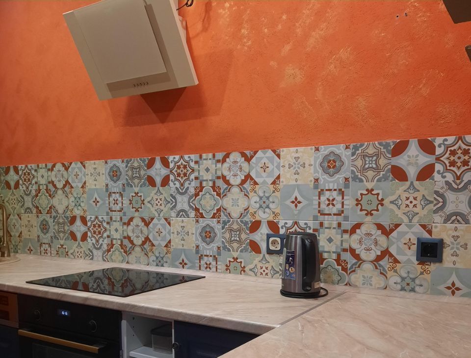 На полу керамогранит и ламинат, в душевой зоне плитка Kerama Marazzi, в кухне фартук плитка (не панель), натяжные потолки, розетки и выключатели одного из лучших производителей- Legrand.